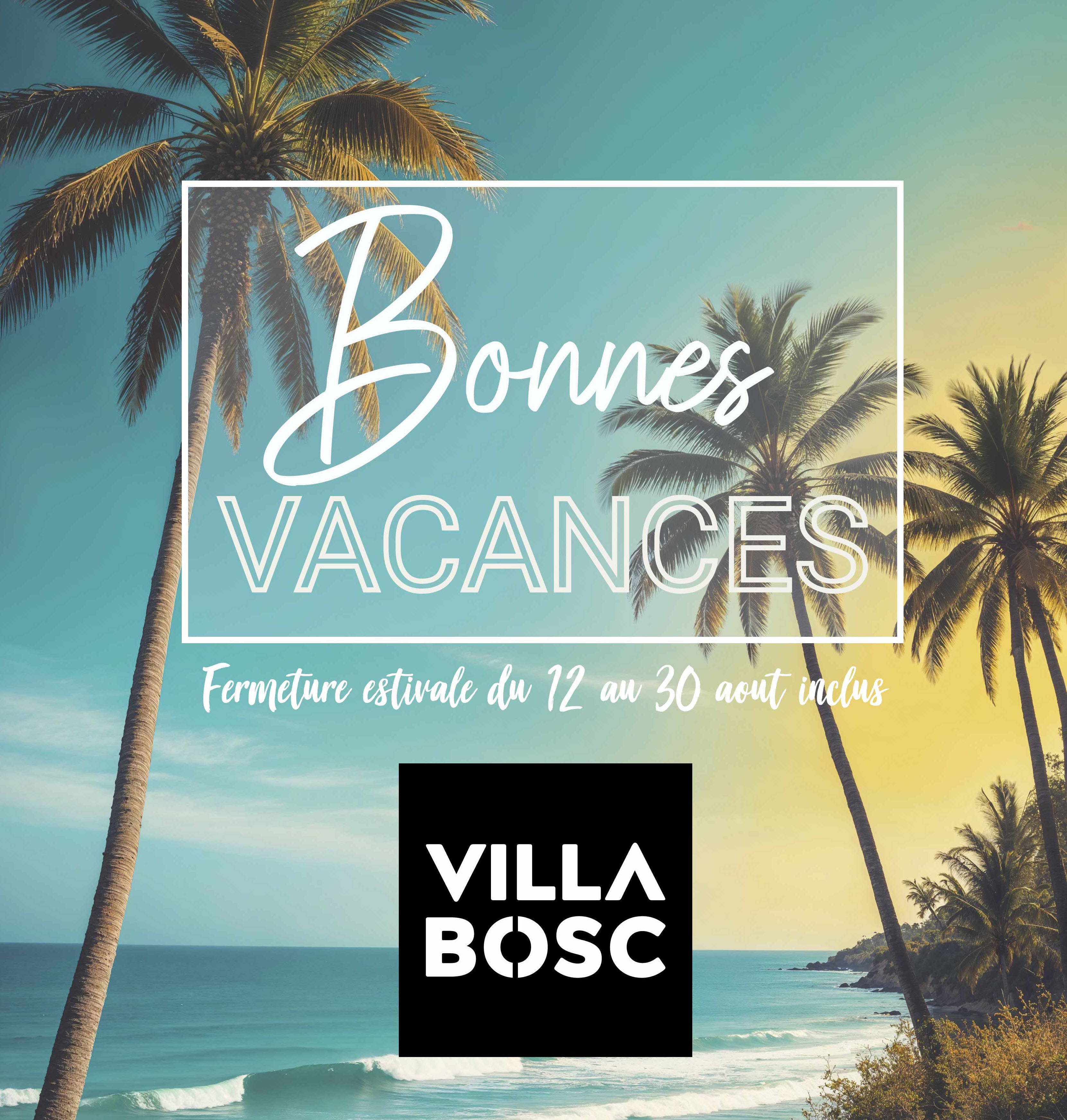Votre constructeur VILLA BOSC fermera ses portes à compter du samedi 29 juillet jusqu'au mardi 15 août 2023 ainsi que du samedi 26 août au dimanche 3 septembre 2023. A bientôt pour votre projet de maison sur-mesure....