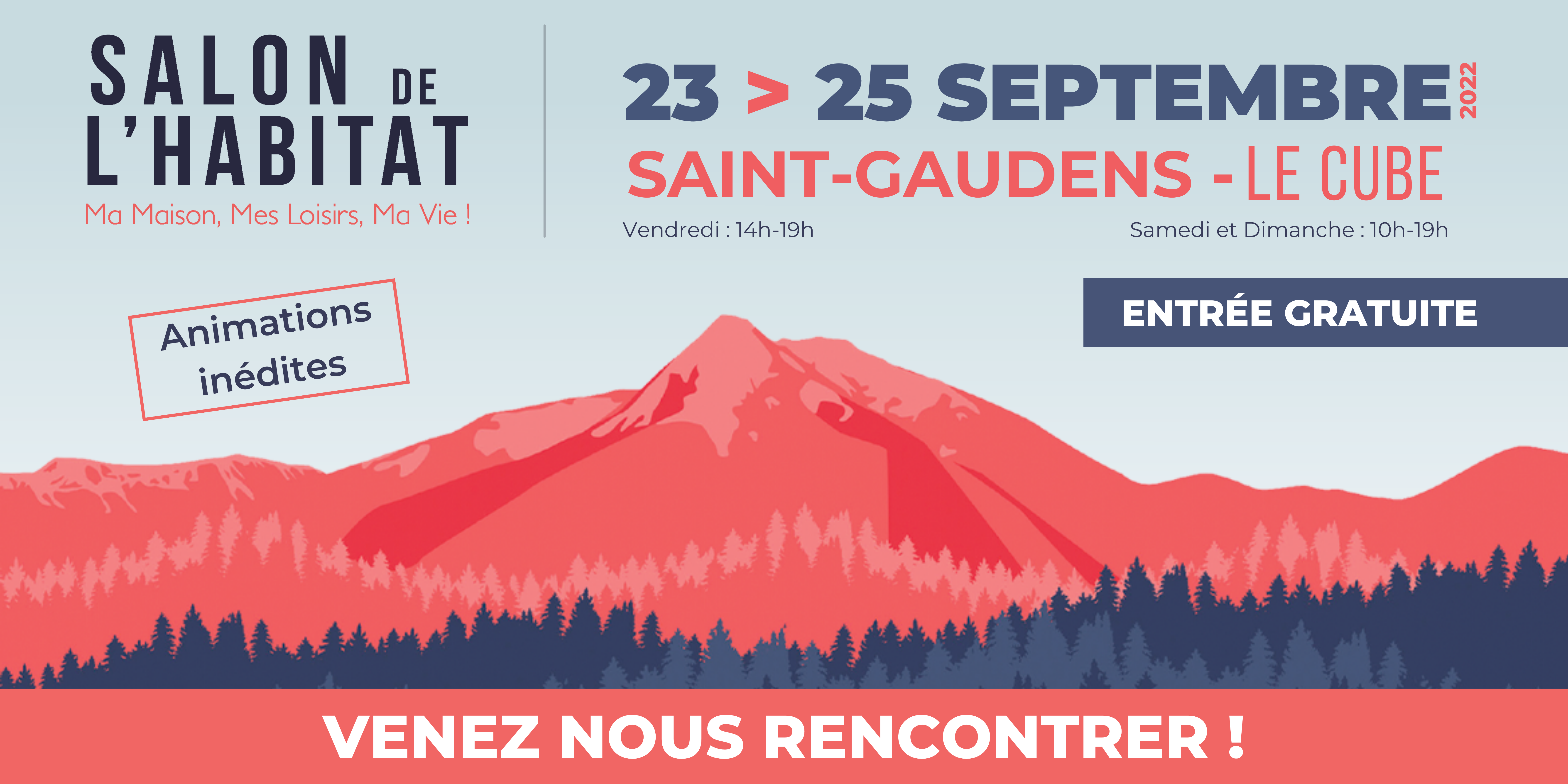 Nous serons présent au Salon de l'Habitat de Saint Gaudens pour sa 23ème édition ! Nous vous donnons rendez-vous au Cube du vendredi 23 au dimanche 25 septembre 2022.